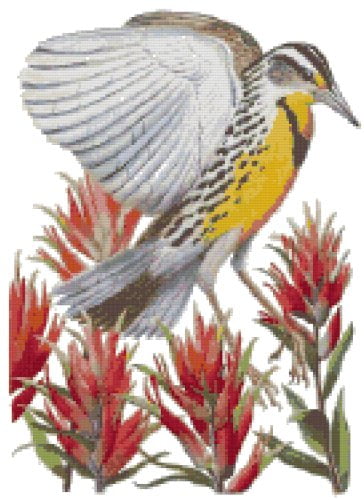 Wyoming State Bird And Flower Indian Paintbrush And Western Meadowlark Counted Cross Stitch Pattern Walmart Com
